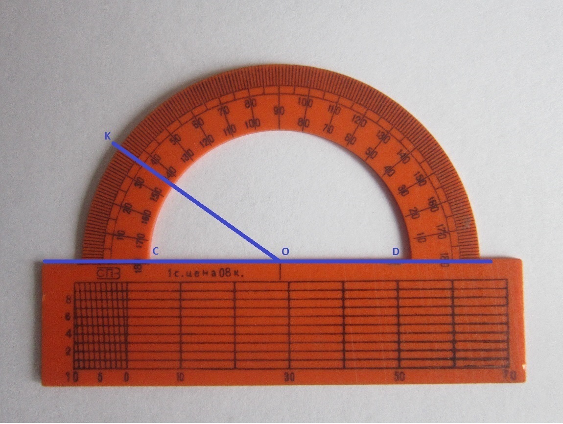 ( чтобы построить дополненный угол - нужно продлить прямую AO и MK)