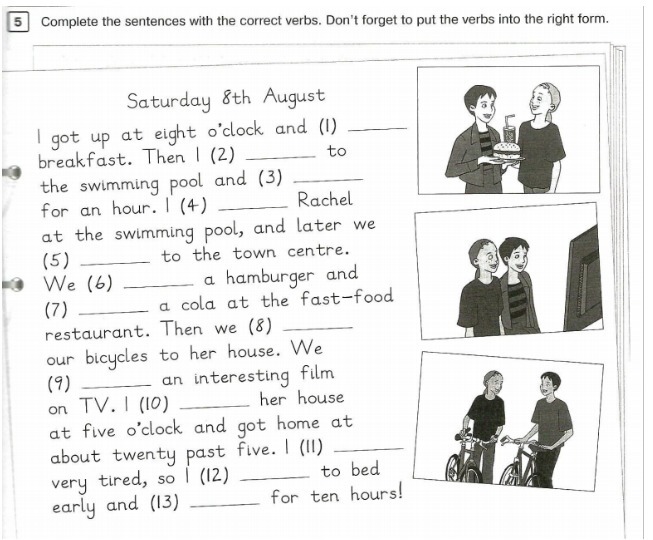 1)had 2)went 3) 4)saw 5)went 6)ate 7) drank 8) rode 9) watched 10) left 11) was 12) went 3)swam