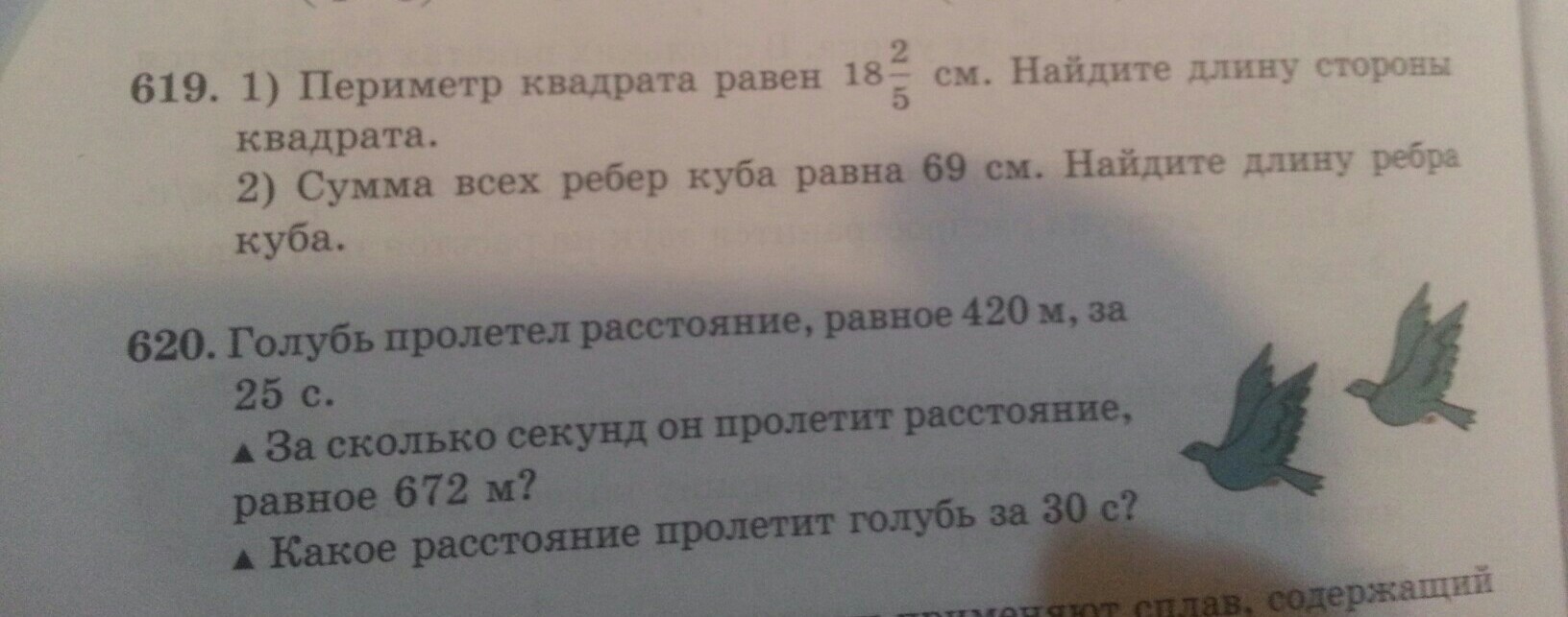 Периметр квадрата равна182/5см .Найдите длину стороны квадрата пожалуста срочна помогите решить 619 и 620