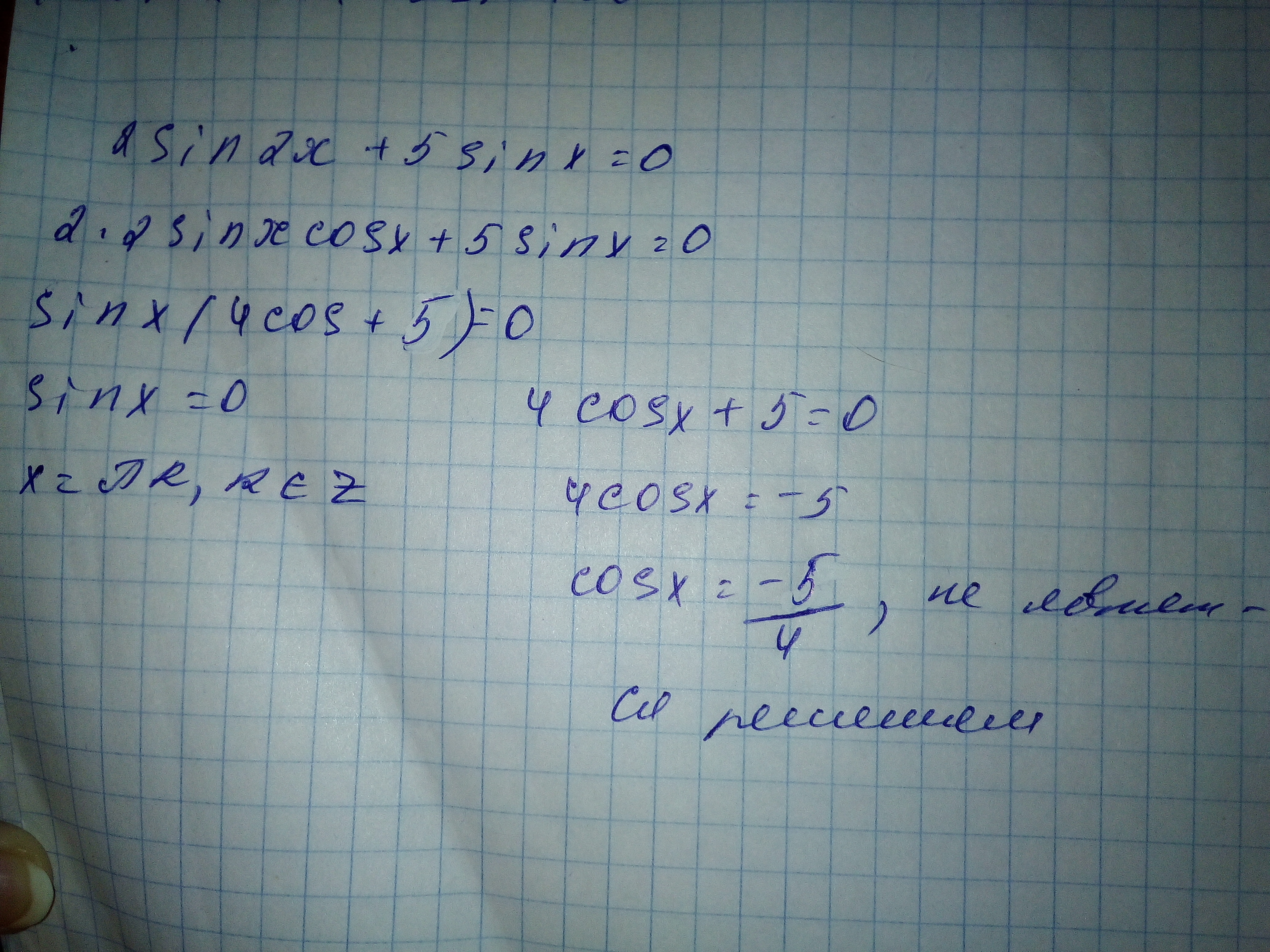 Синус и косинус принадлежат отрезку [-1;+1], следовательно, cosx=-1,25 не является решением