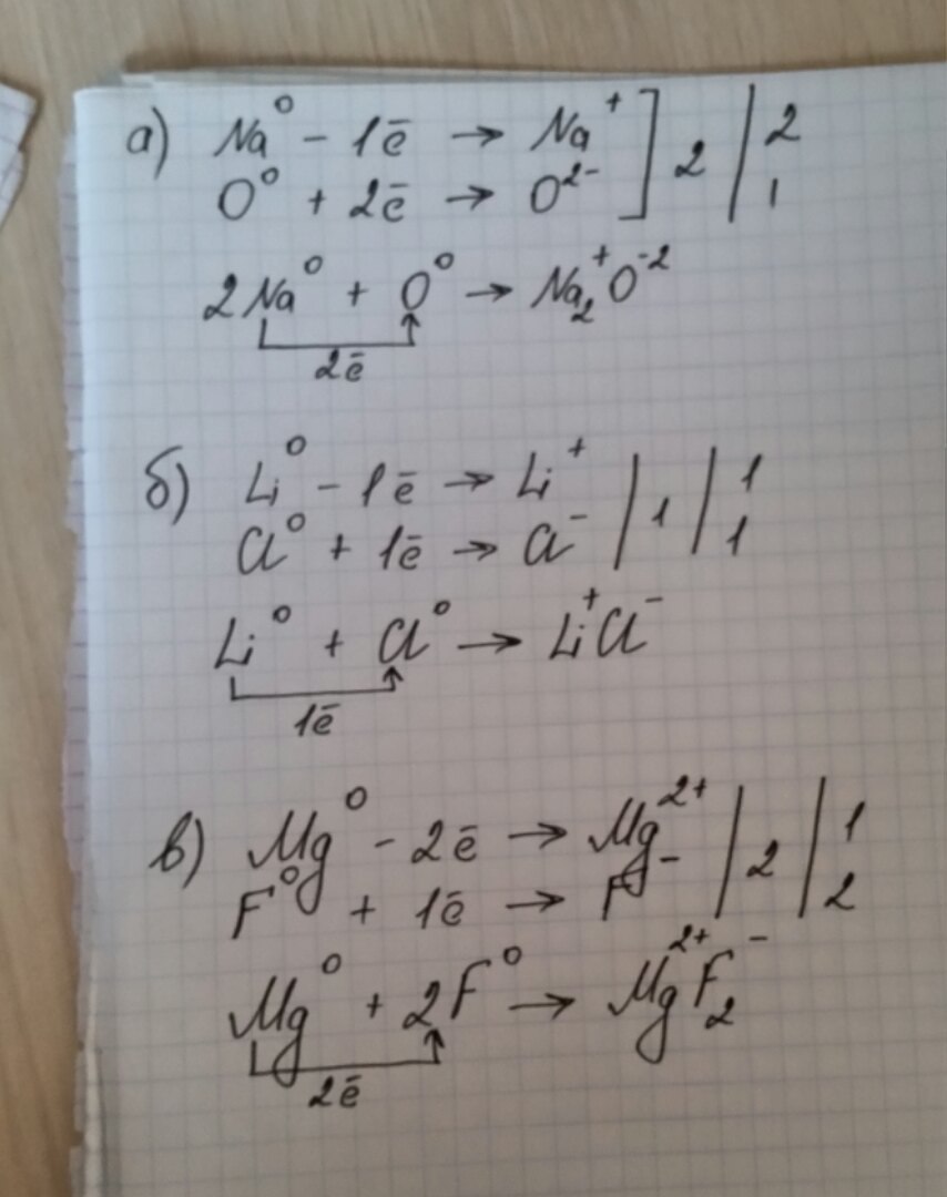 помогите рассмотреть схемы образования ионной связи между атомами химических элементов: а) Na и O; б)Li и Cl, ,в) Mg и Fe