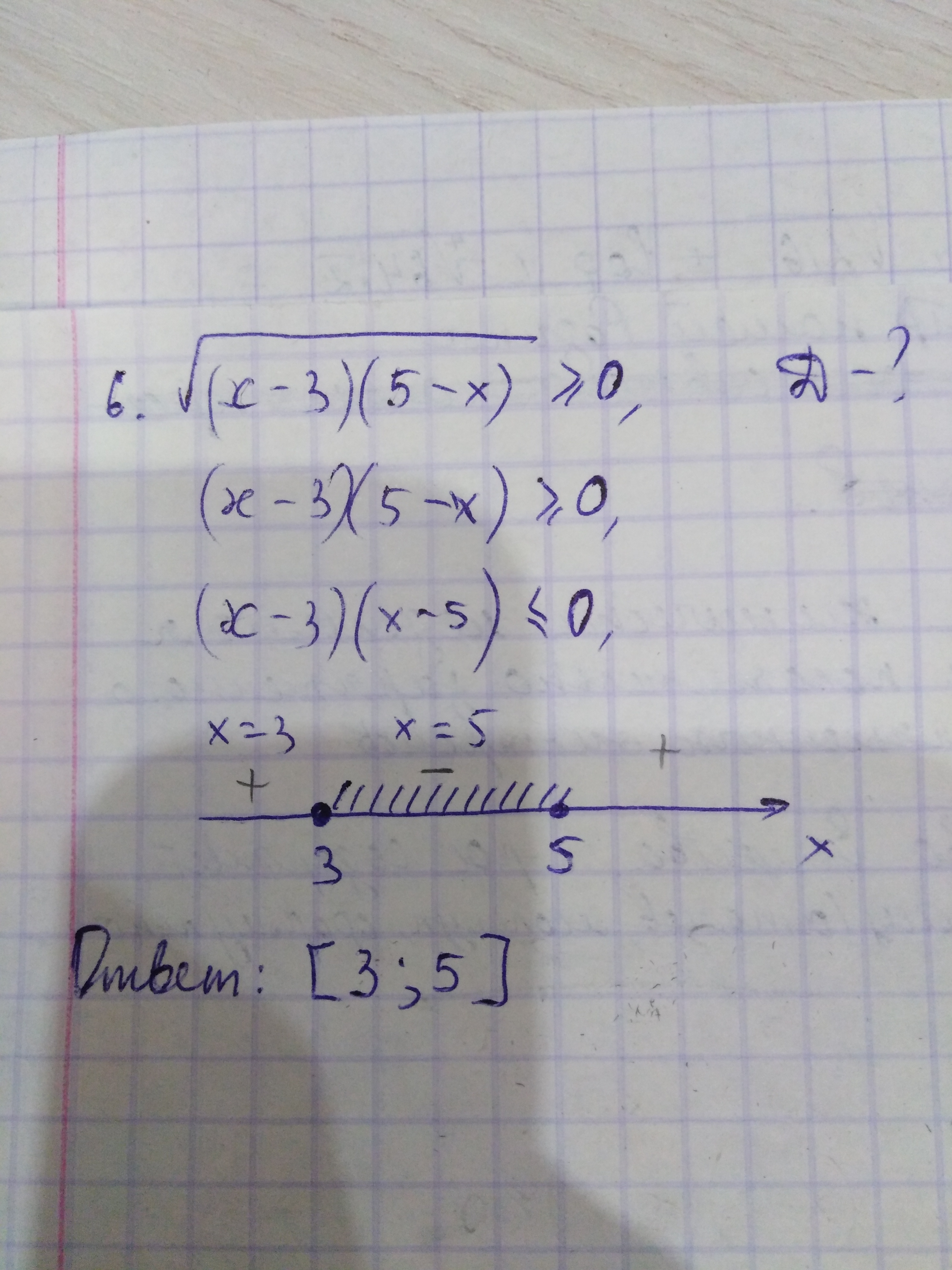 В 6 выражение под корнем не должно быть отрицательным, поэтому больше либо равно нулю. Потом методом интервалов