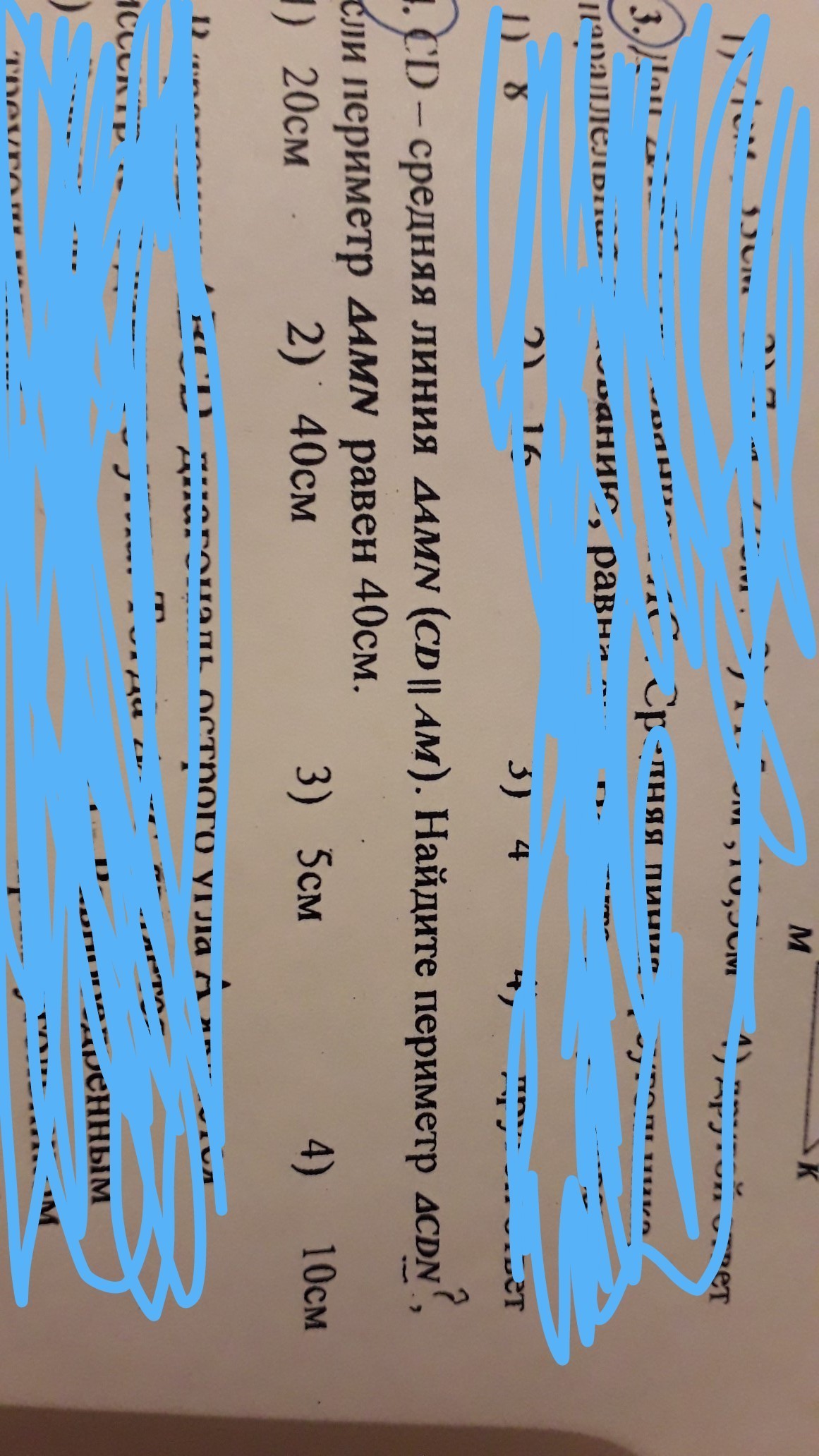 Ответ: 1) 20 см. Ибо стороны треугольника CDN в два раза меньше сторон треугольника AMN