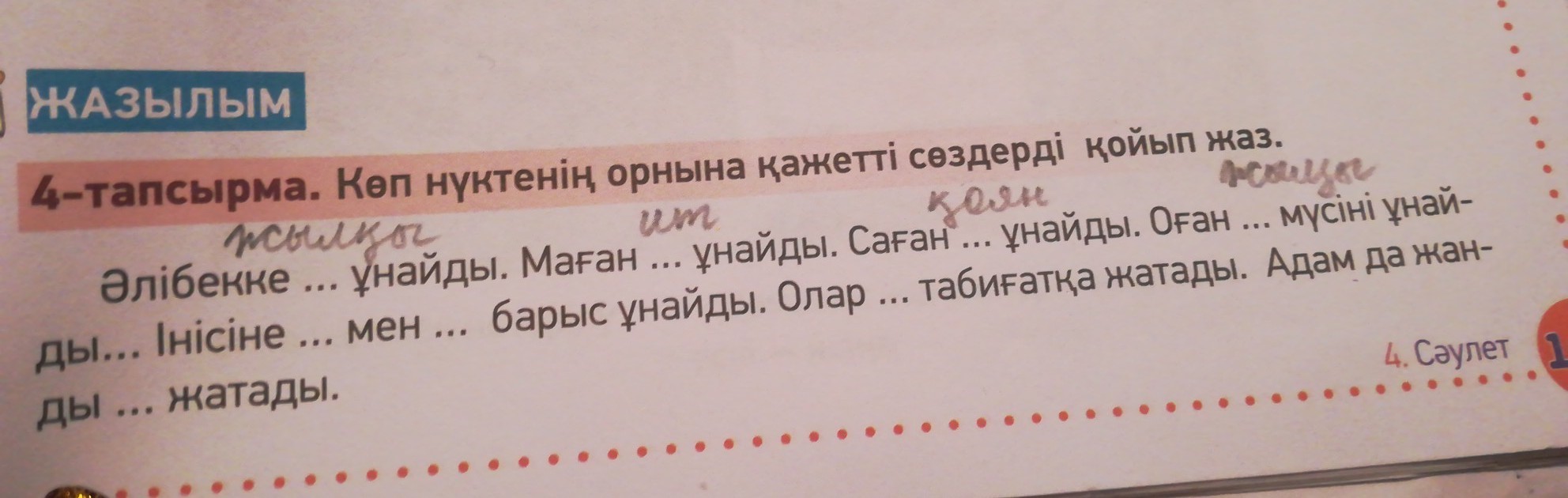 ал інісіне тасбақа мен тау барысы ұнайды.Олар жанды табиғатқа жатады.Адам да жанды табиғатқа жатады