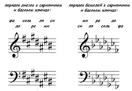 6) 4 бемоля: си ми ля ре (но т.к. это басовый ключ, то бемоли на линейках соль до фа си)
