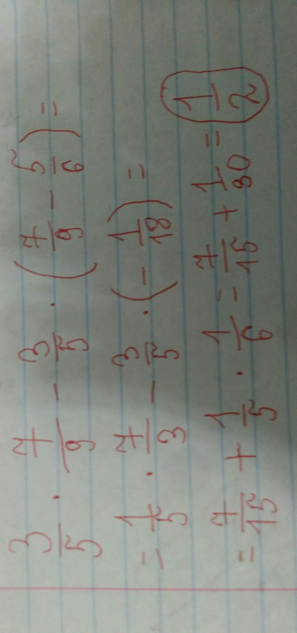 3 пятых умножить на 7 девятых минус три пятых умножить на скобка 7 девятых минус 5 шестых скобка закрывается
