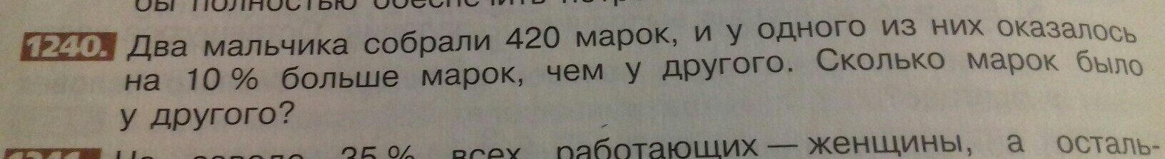 420=100% 100%/2=50% 50%+10%=60% 60%:100%×420=252 420-252=168