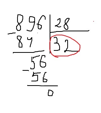 Составьте БУКВЕННОЕ выражение: разность произведения чисел 32 и а и частного чисел 896 и 28. Найдите значение выражения, если а=15.