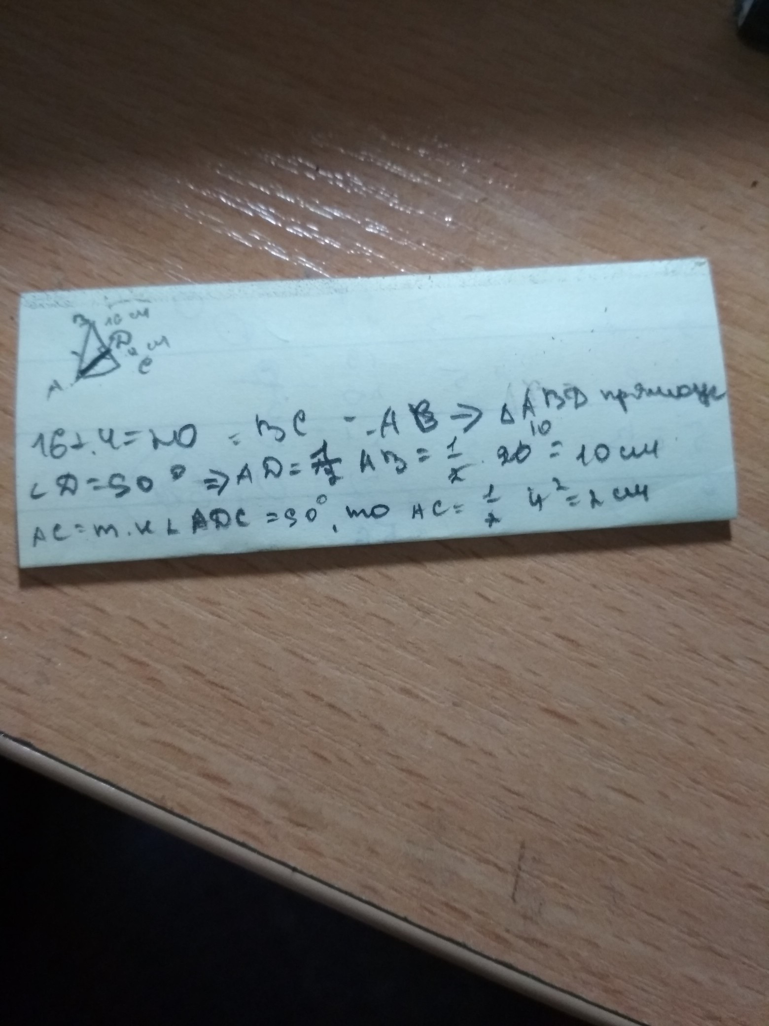 треугольник ABC-равнобедренный с основанием AC, AD-его высота, BD=16см, DC=4 см. Найдите основание AC и высоту AD. Срочно помогите пожалуйста!!!