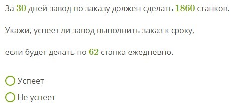 Укажи, успеет ли завод выполнить заказ к сроку,