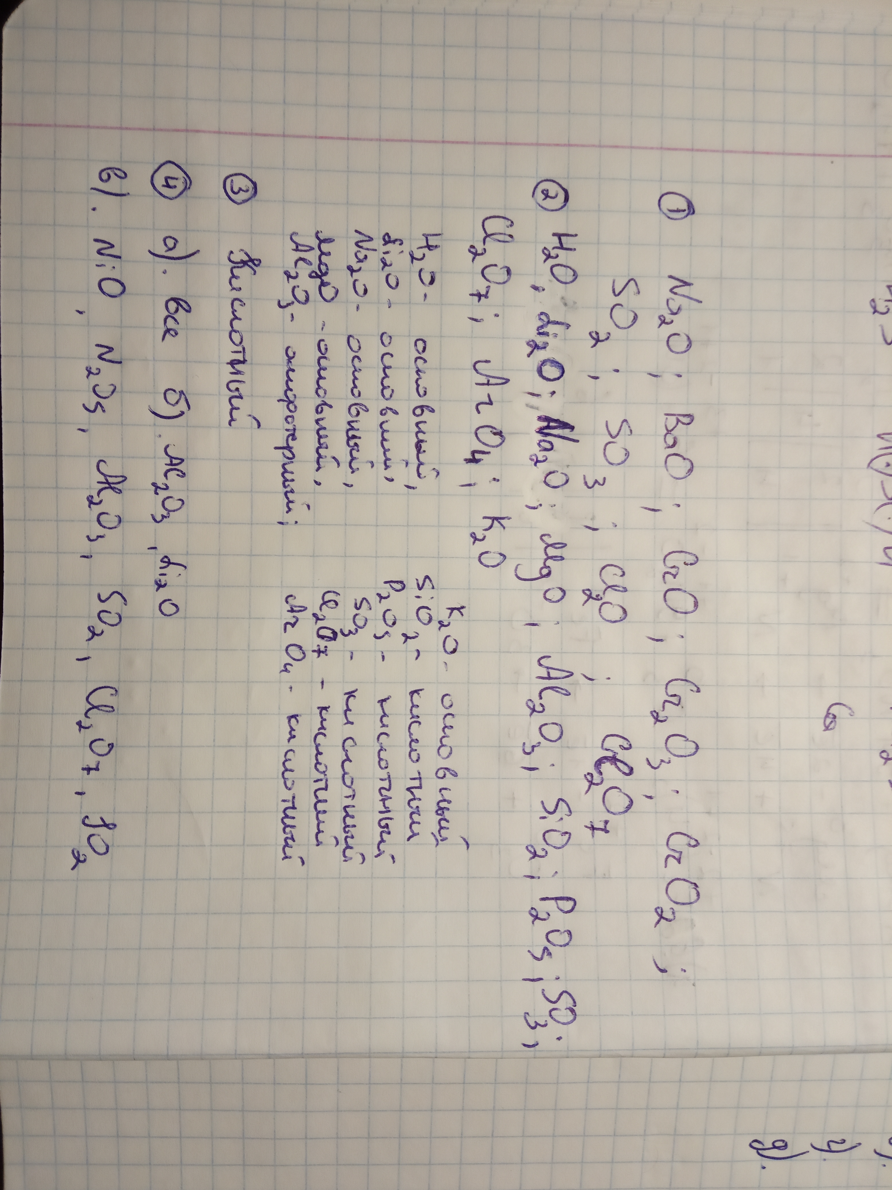 оксид натрия, оксид бария, оксид хрома (II), оксид хрома (III), оксид хрома (VI), оксид серы (IV), оксид серы (VI), оксид хлора (I), оксид хлора (VII).