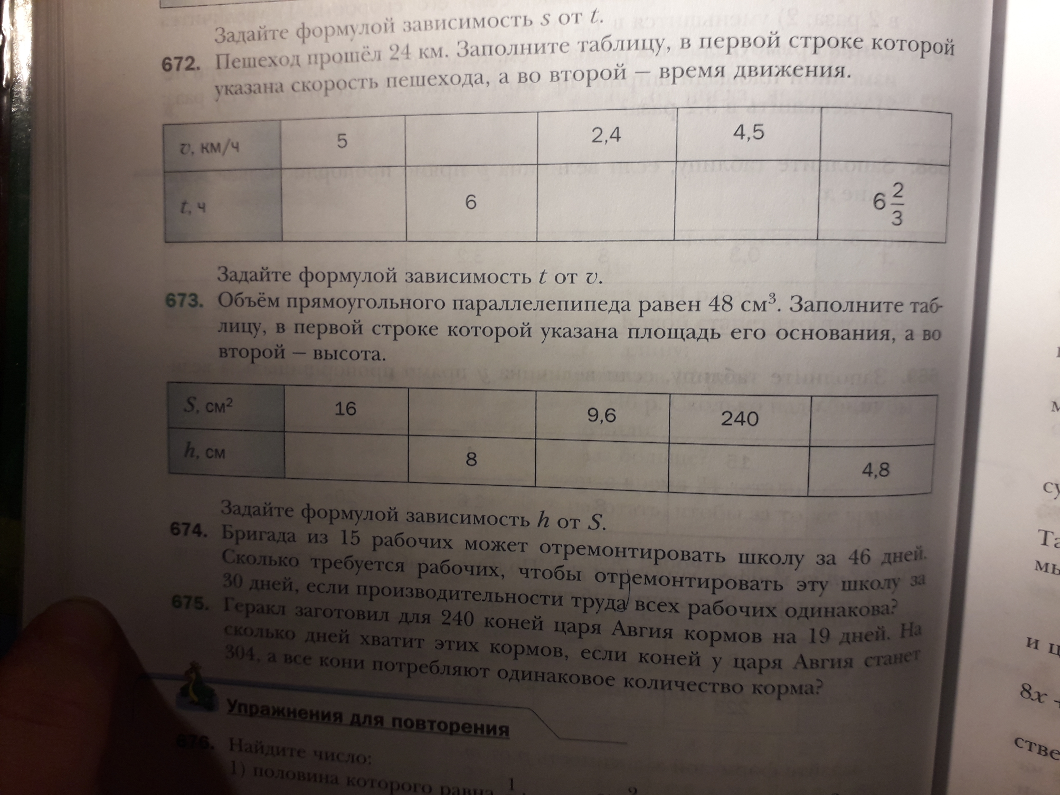 V=S*h. h=V:S. S=V:h. (Вот формулы)