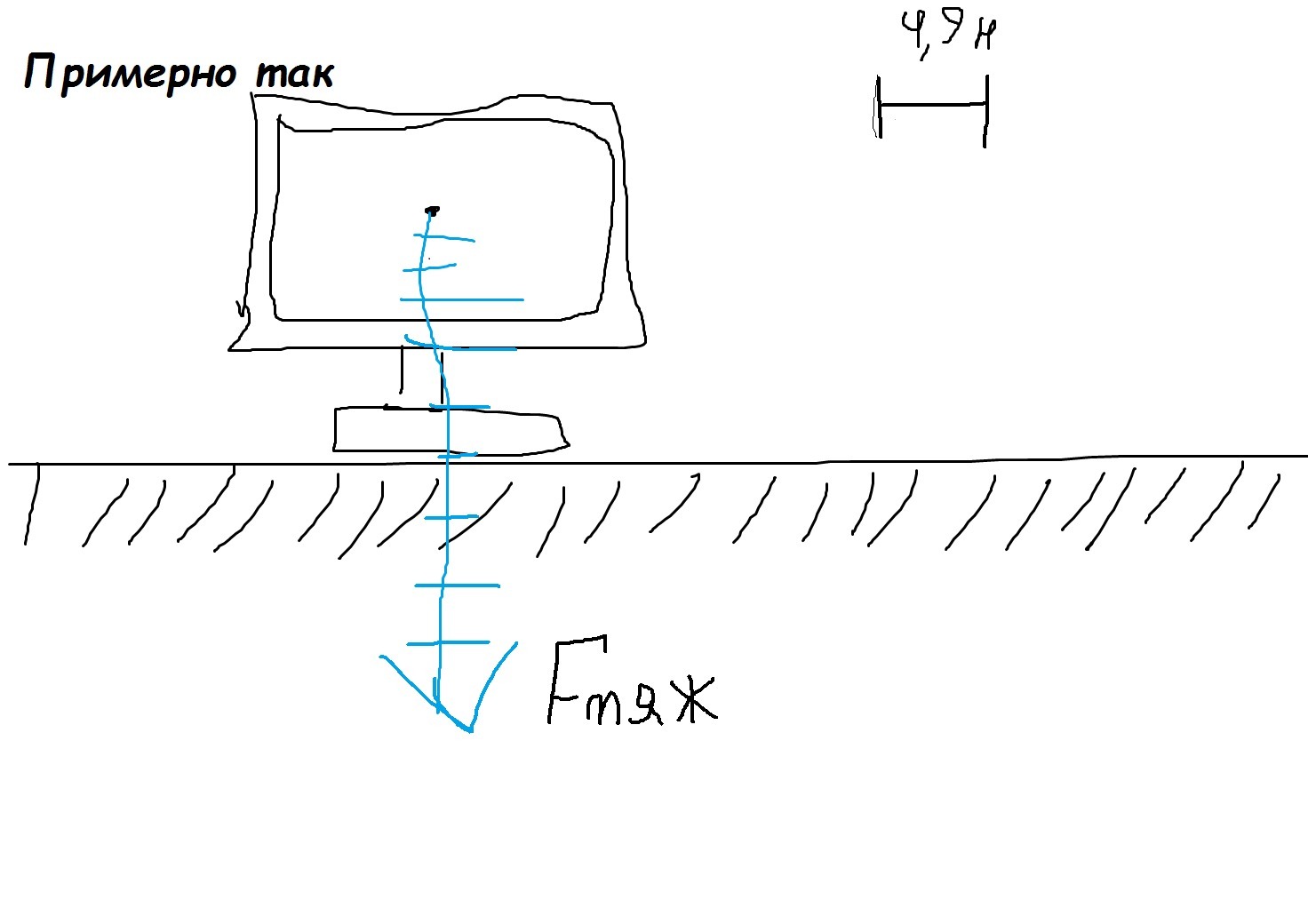 На столе стоит телевизор массой 5 кг. Определите силу тяжести и вес телевизора. Изобразите эти с силы на рисунке