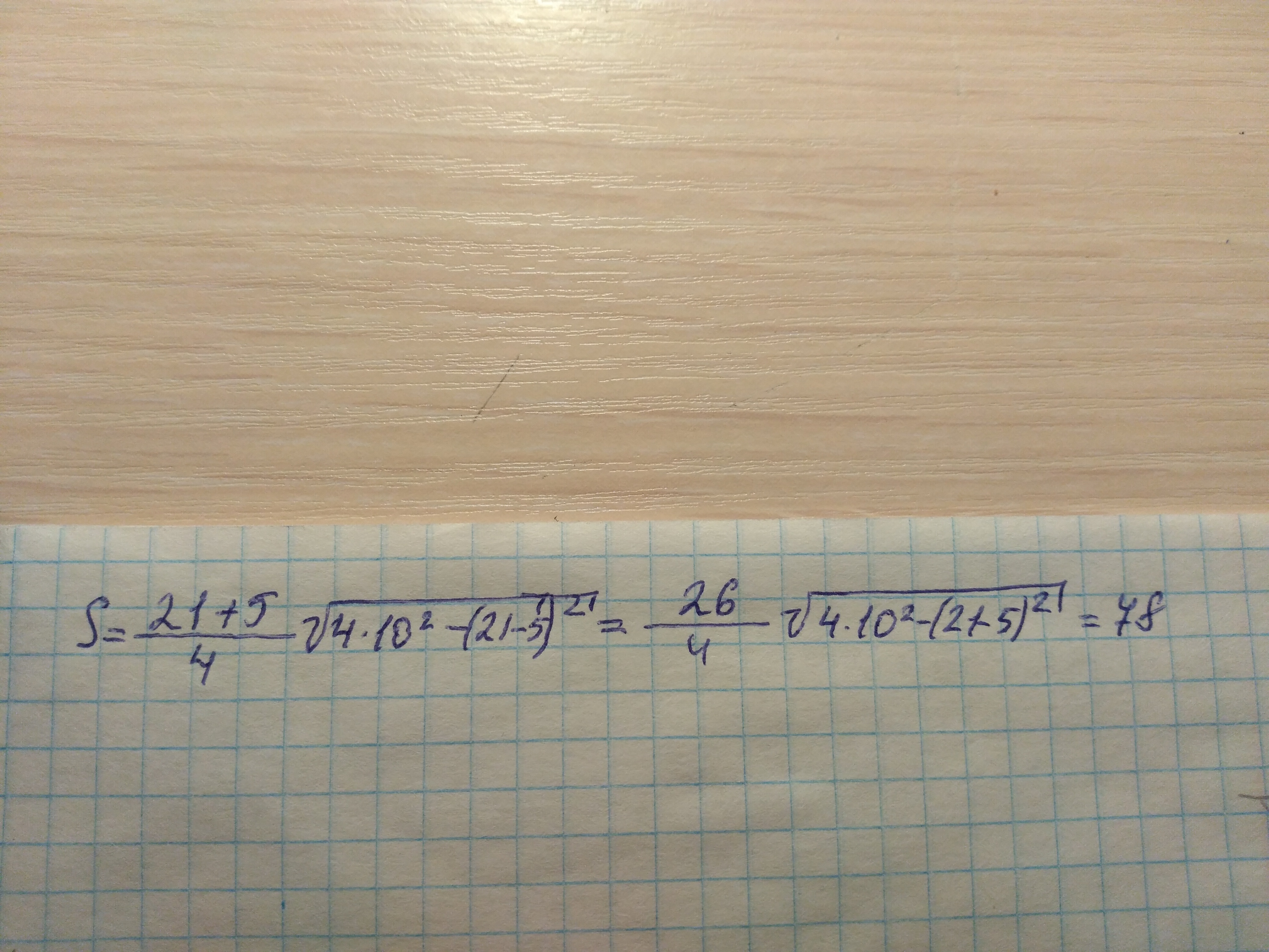 Найти площадь равнобедренной трапеции с основаниями 5 дм и 21 дм и боковой стороной 10 дм.