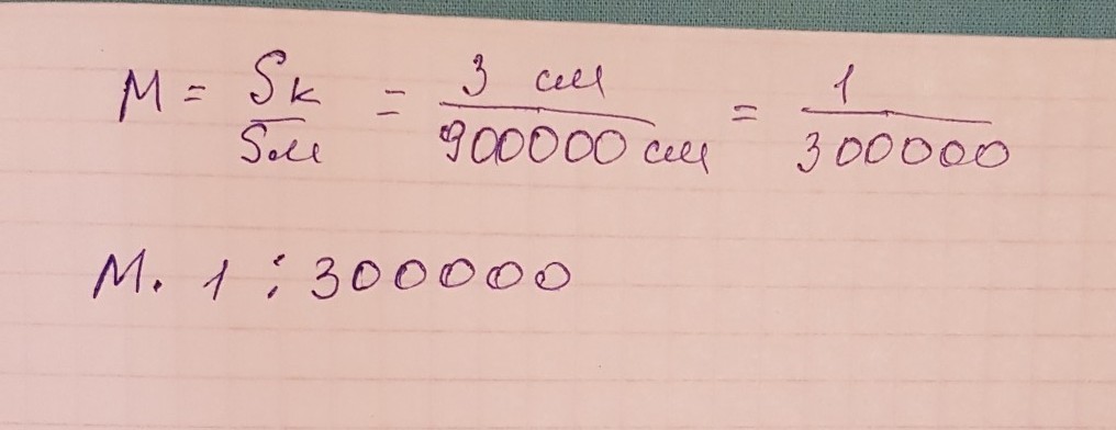 масштаб-это отношение расстояния на карте к соответствующему расстоянию на местности.(Всё должно быть в сантиметрах)