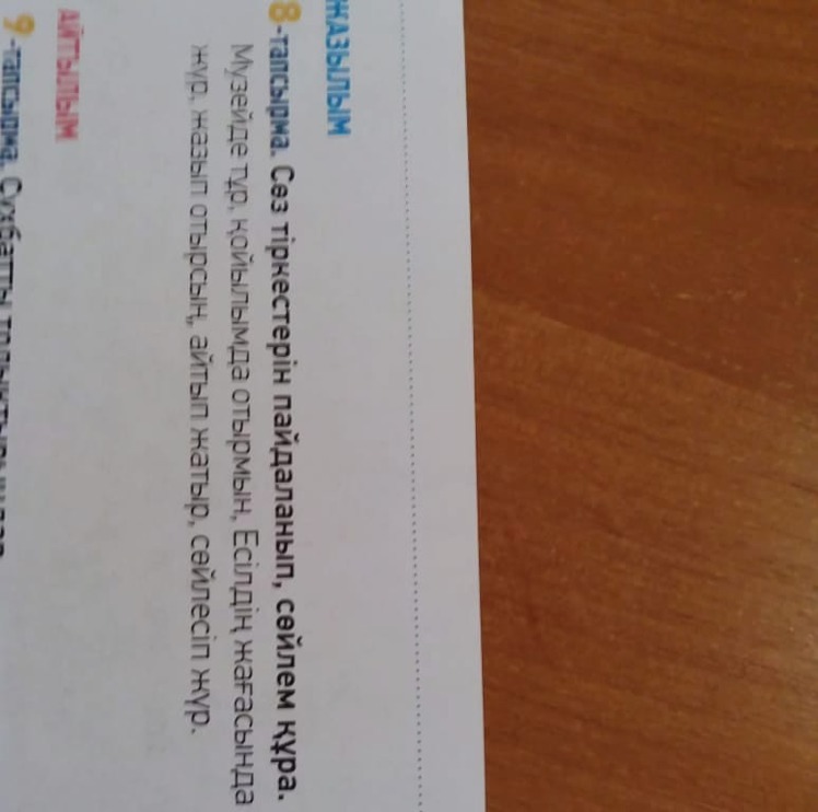 әлияның мүсені музейде тұр. Мен Еселдің жағасыңда жүргім келеді. Сен қазақ тілінден берген тапсырманы жазып отырсың. Ол ертеңгі болатын театр туралы айтып жатыр. Біздер мектеп туралы сөйлеп жүрміз. Мен сіңілімнің қойылыңда отырмын.