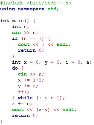 Правда, тогда придется "угадать" тест, где N равно единице, поскольку мы используем do-while для ввода. Логично, что в наборе из одной карточки могла потеряться только эта единственная карточка.