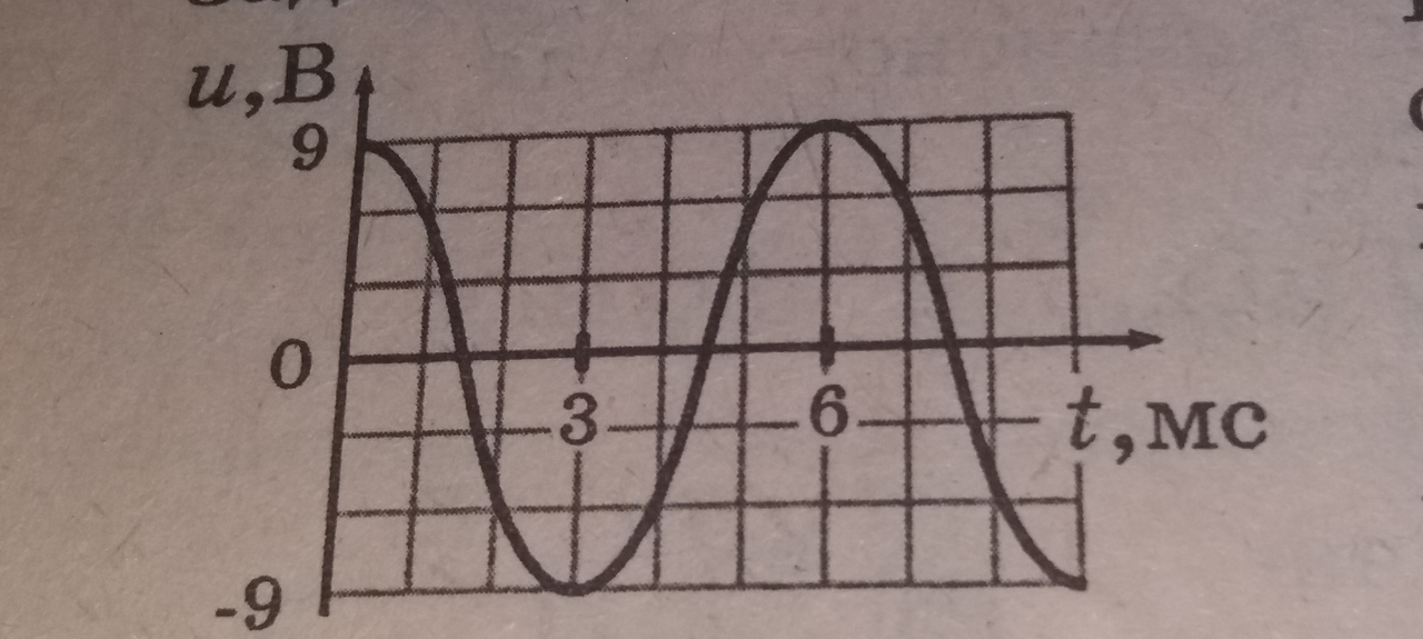 Действующее значение синусоидального (или косинусоидального) напряжения равно U=0,707*Umax=0,707*9=6,363 В.