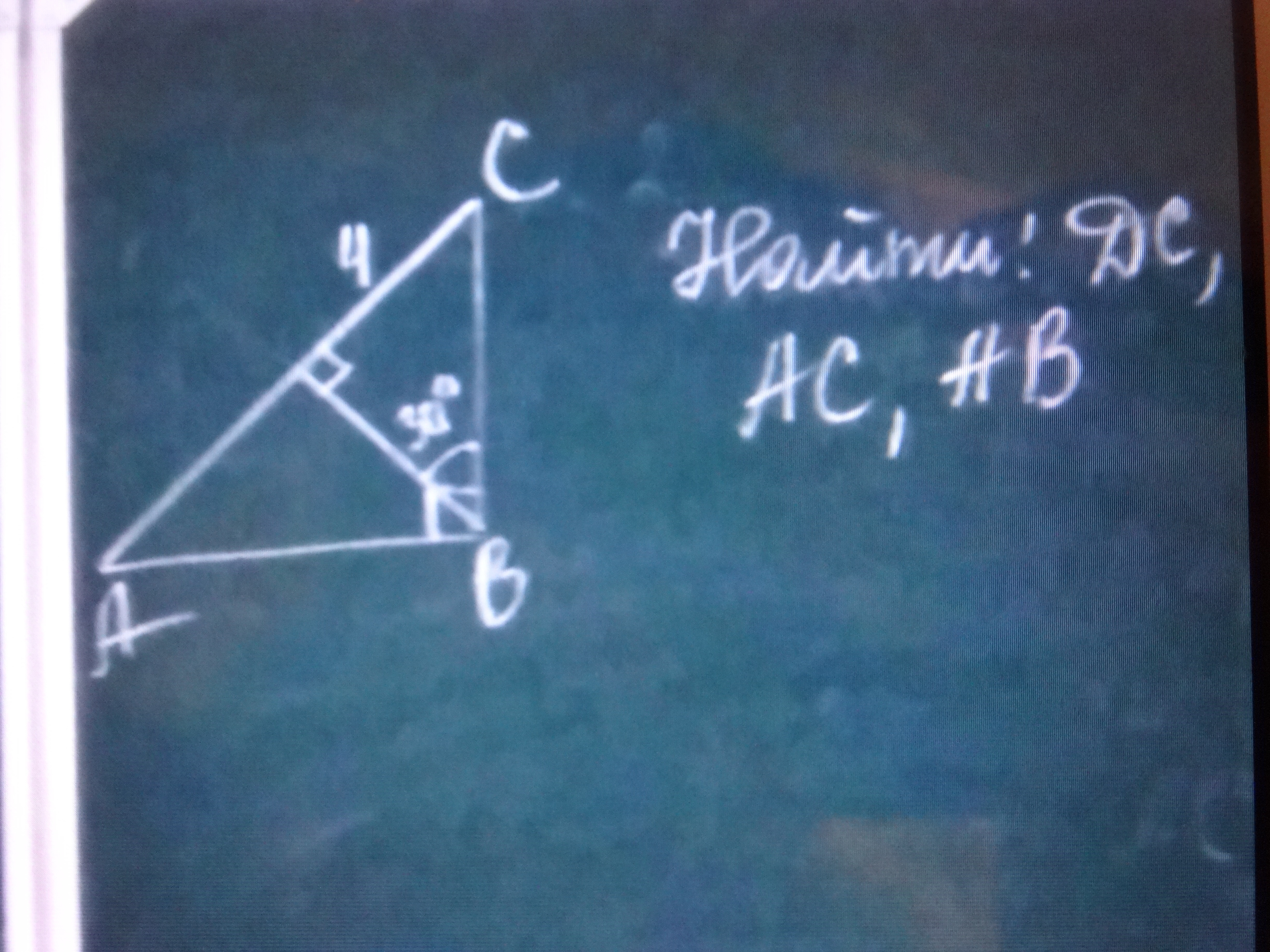 напротив 30° лежит катет равный половине гипотенузы ⇒ 4 ×2 = 8 ; ВС = 8