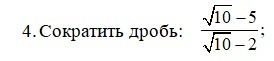 1)frac{sqrt{10} -5}{sqrt{10}-2 } =frac{sqrt{5*2}-(sqrt{5})^{2}}{sqrt{5*2} -(sqrt{2} )^{2} }=frac{sqrt{5}(sqrt{2} -sqrt{5})}{sqrt{2}(sqrt{5} -sqrt{2})}=-frac{sqrt{5} }{sqrt{2} }=-frac{sqrt{5}*sqrt{2}}{sqrt{2}*sqrt{2}}=-frac{sqrt{10} }{2}