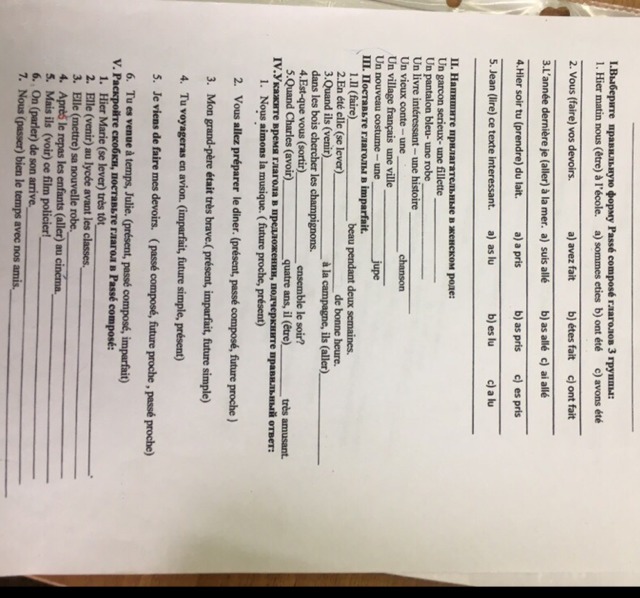 №5. 1) Marie s'est levée, 2) elle est venue, 3) elle a mis, 4) les enfants sont allés, 5) ils ont vu, 6) on a parlé, 7) nous avons bien passé