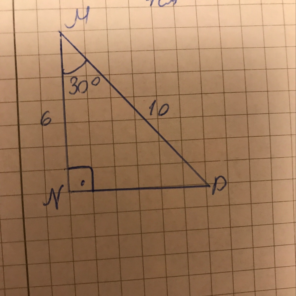 Против угла в 30°С лежит катет, равный половине гипотенузы. ⇒ NP=1/2MP=5 см