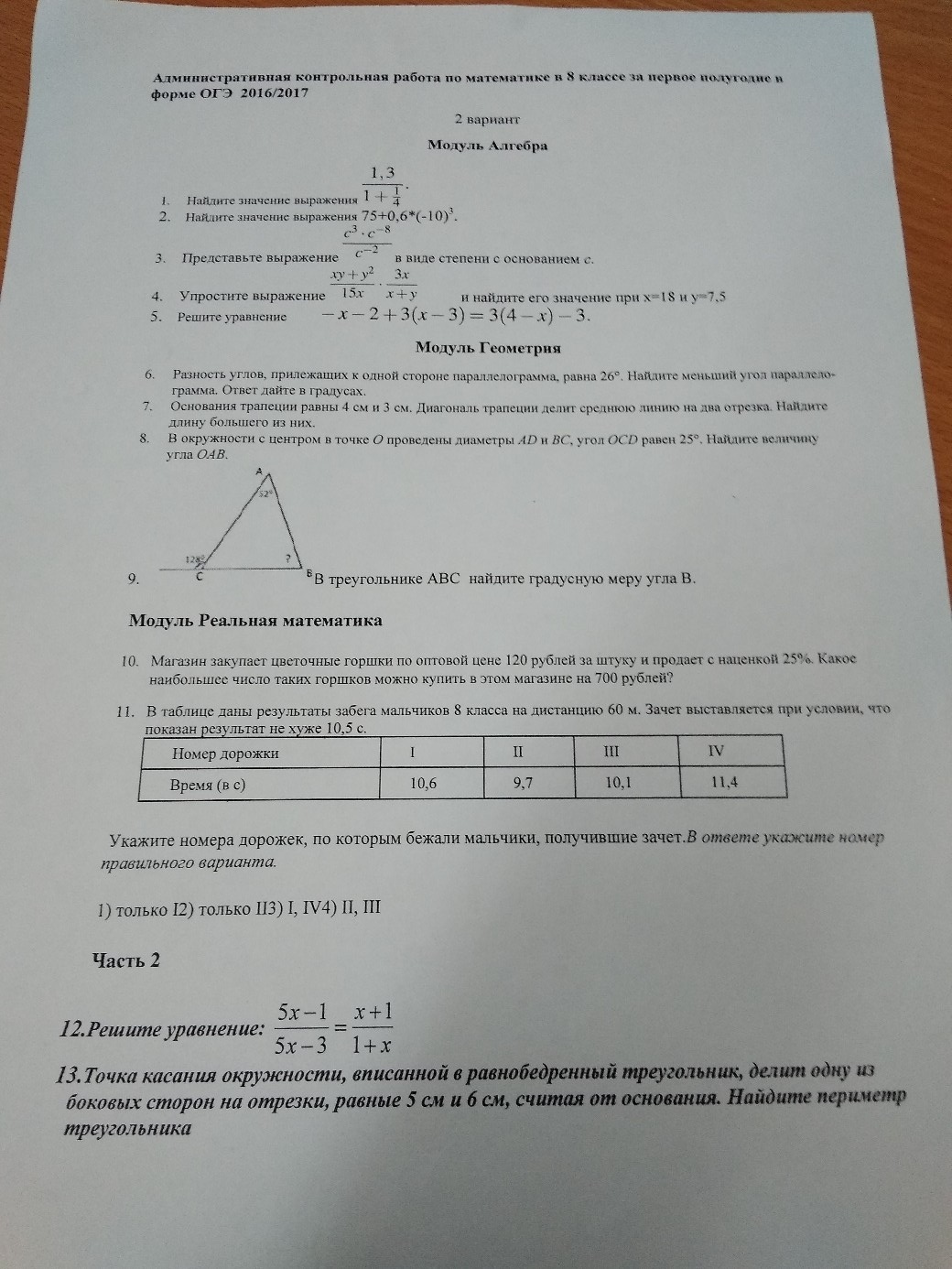 Нужна СРОЧНАЯ помощь в пробнике! Алгебра и Геометрия. Попытайтесь пожалуйста что нибудь разглядеть и решить. СПАСИБО
