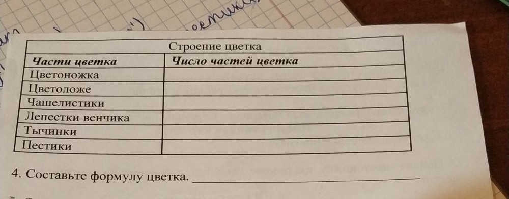 У цветка каждого растения имеется своя формула, но для заполнения этой таблицы нужно знать какое это растение