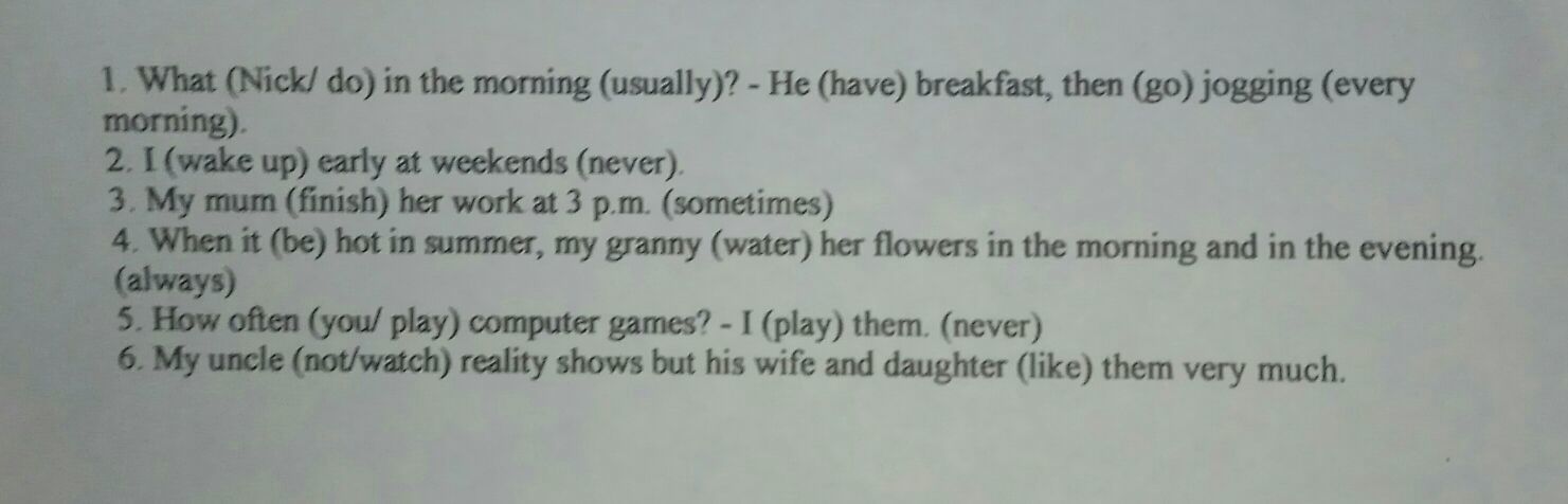 1. What does Nick usually do in the morning? - He has breakfast, then goes to jogging every morning.