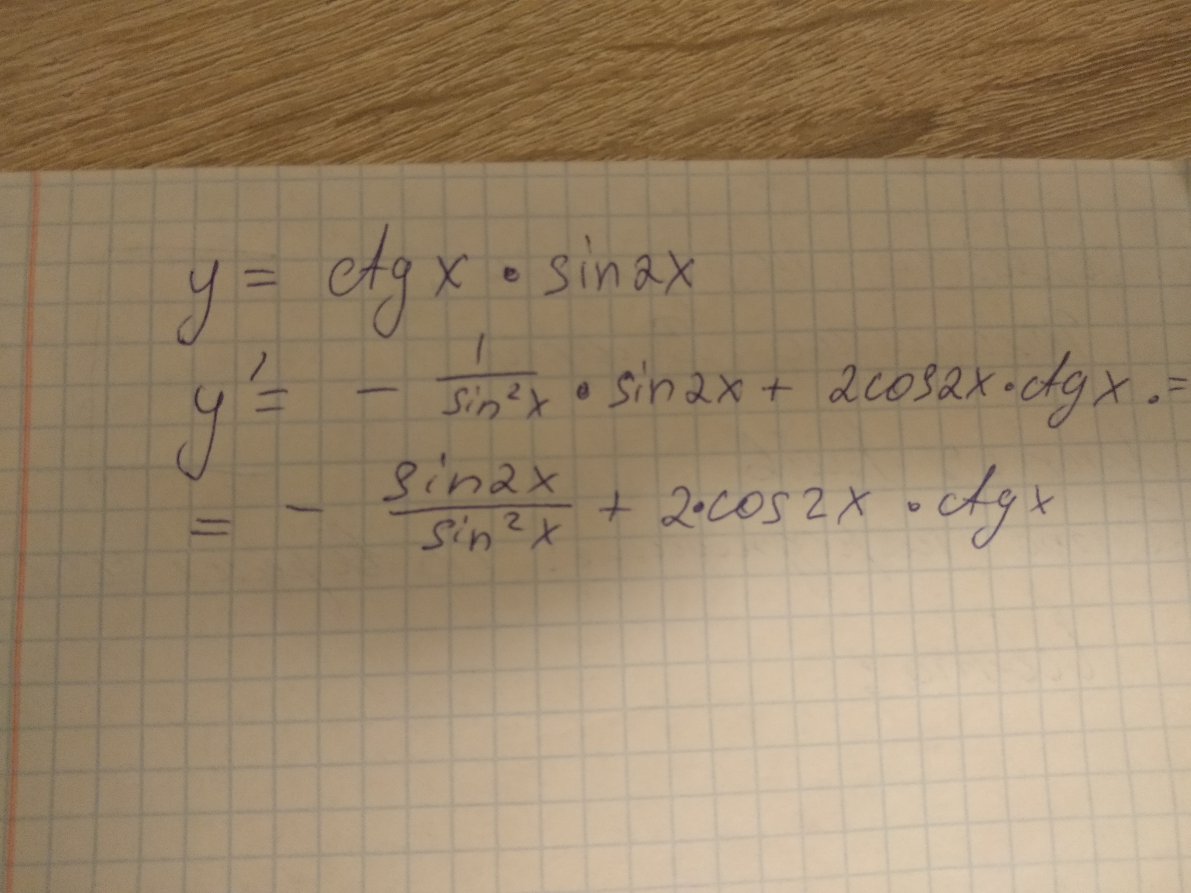 Ответ:-sin(2x)/sin^2(x)+2cos(2x)*ctg(x)