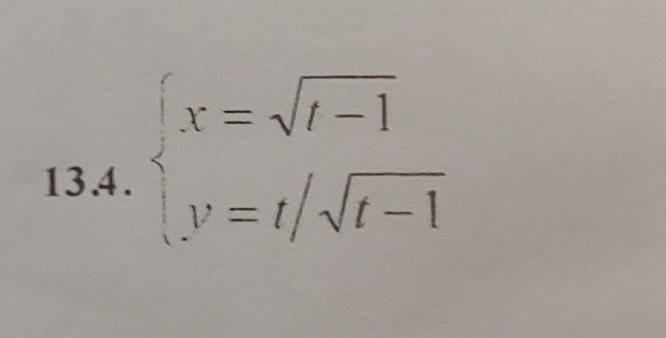 x=sqrt{t-1}; ,; ; ; y=frac{t}{sqrt{t-1}}\\x'_{t}=frac{1}{2sqrt{t-1}}\\y'_{t}=frac{sqrt{t-1}-tcdot frac{1}{2sqrt{t-1}}}{t-1}=frac{2(t-1)-t}{2sqrt{(t-1)^3}}=frac{t-2}{2sqrt{(t-1)^3}}\\y'_{x}=frac{y'_{t}}{x'_{t}}=frac{t-2}{2sqrt{(t-1)^3}}:frac{1}{2sqrt{t-1}}=frac{t-2}{t-1}=[; t-1=x^2; ; to ; ; t=x^2+1; ]=frac{x^2-1}{x^2}