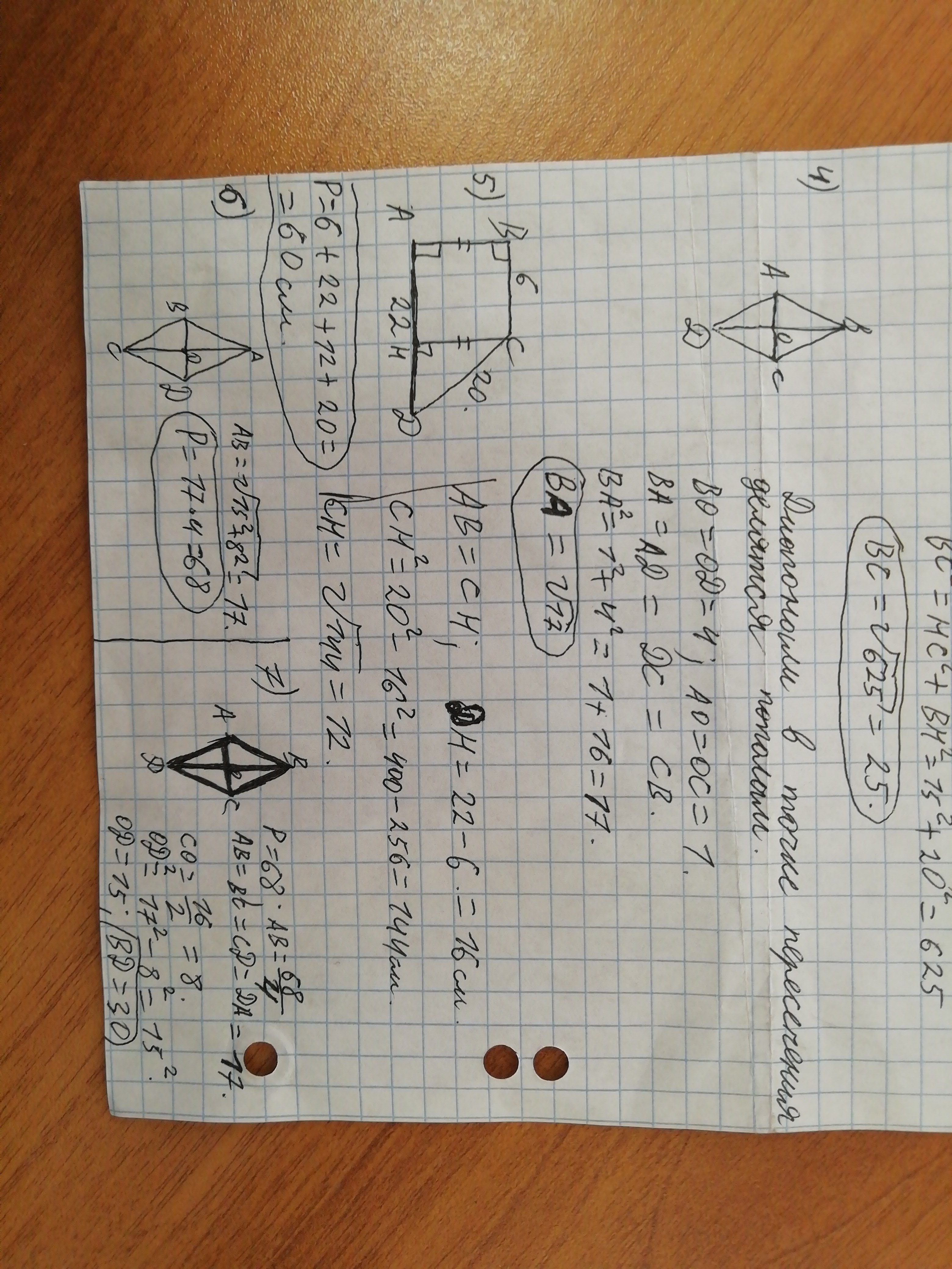 6. Диагонали ромба равны 16см и 30см. Найдите периметр ромба.