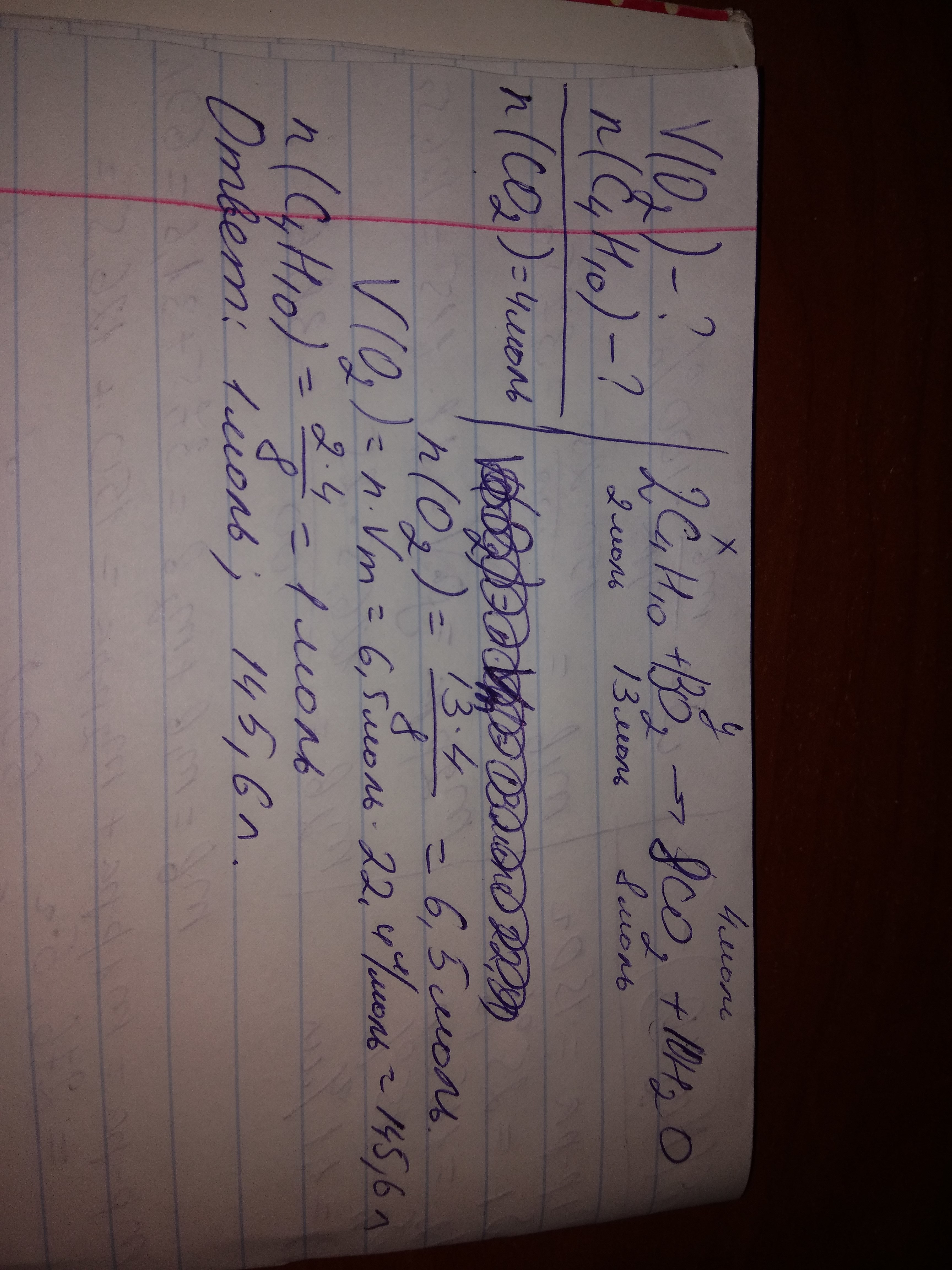 Який об'єм кисню та яка кількість бутану вступає в реакцію, якщо в результаті реакції утворюється 4 моль вуглекислого газу
