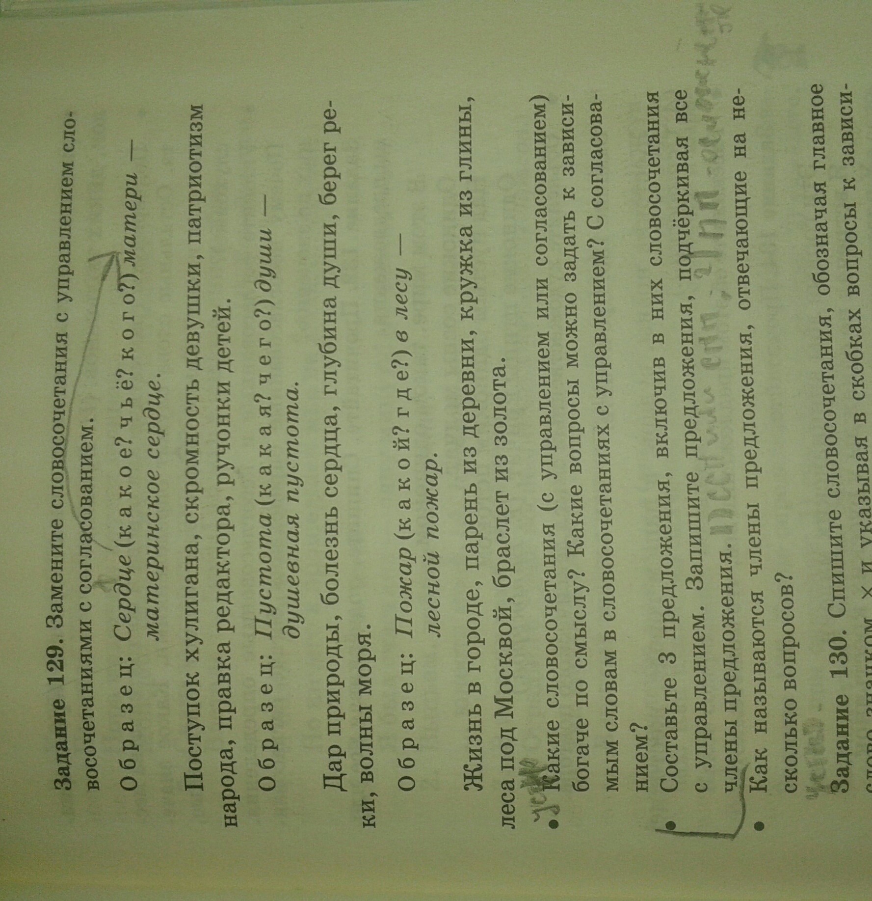 Более разнообразными по смыслу являются словосочетания на основе управления. К зависимым словам можно задать падежные вопросы, вопросы обстоятельств и вопросы определений.