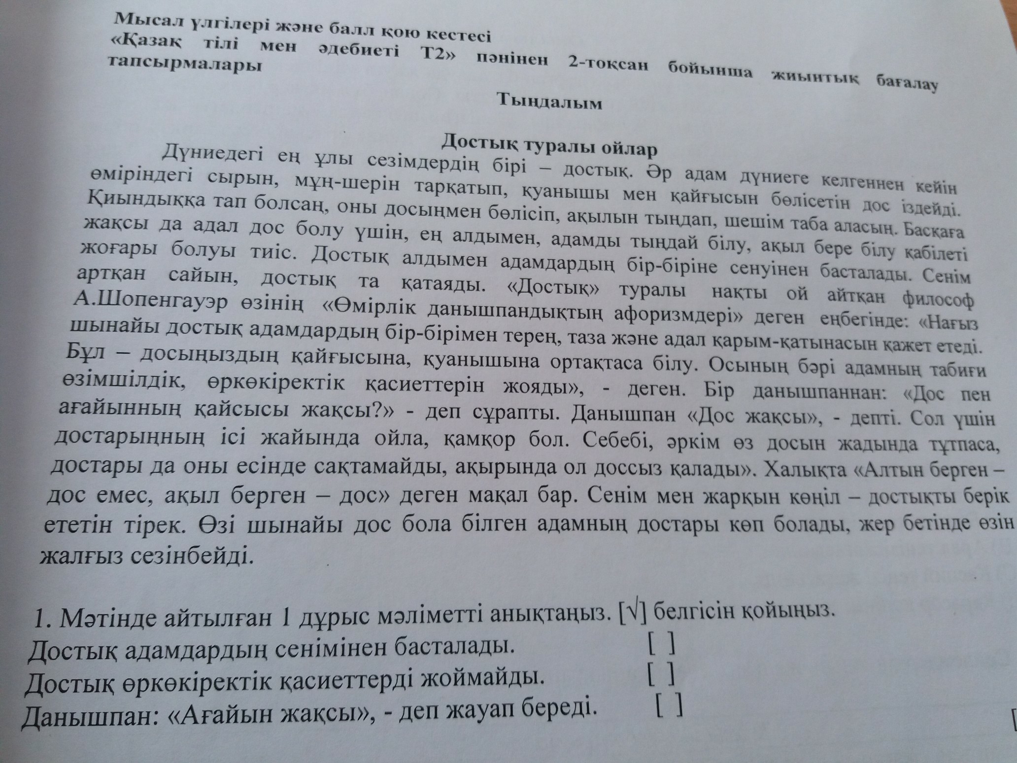 Дұрыс жауабы: Достық адамдардан сенімінен басталады.