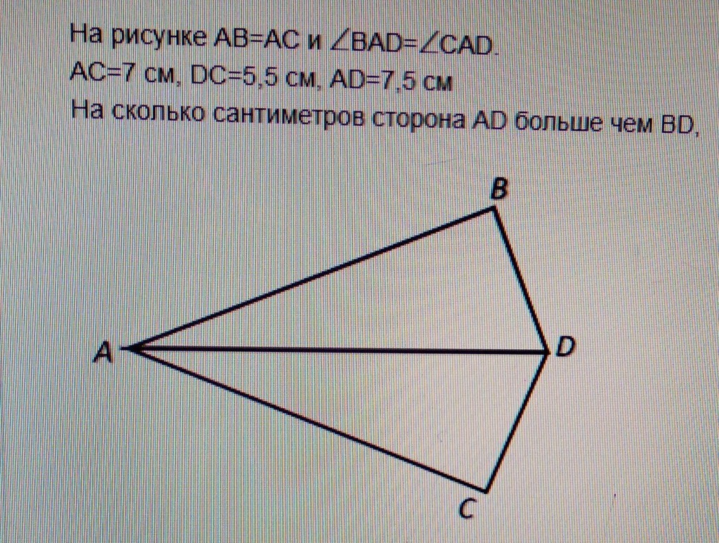Следовательно ВD=CD, 7,5-5,5=2
