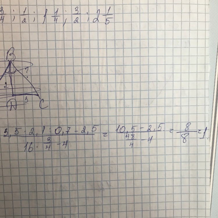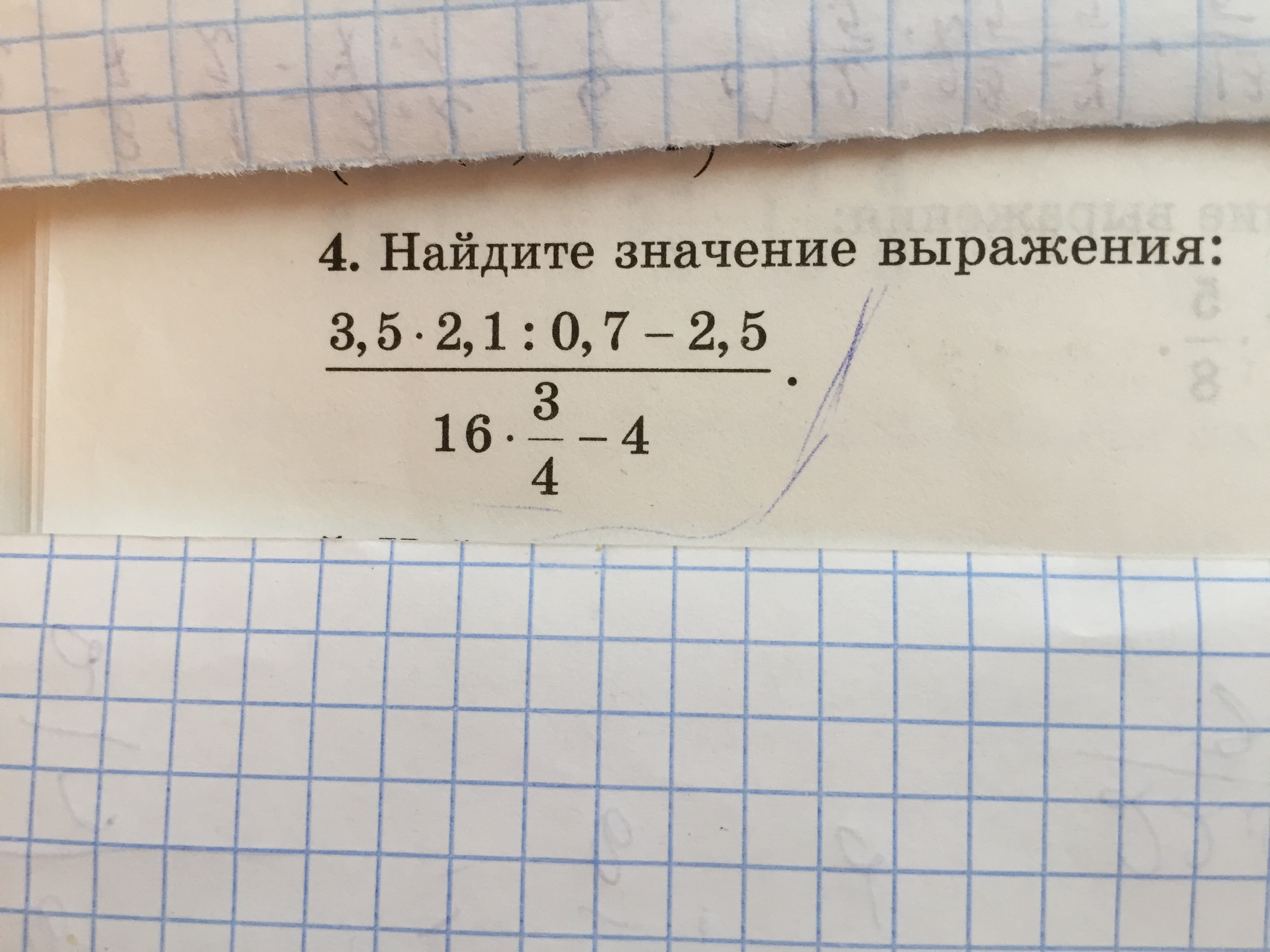 3,5*2,1:0,7-2,5/16*3/4-4 = 7,35:0,7-2,5/4*3-4 = 10,5-2,5/12-4 = 8/8 = 1
