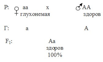 1) генотип глухонемой матери аа (гаметы а),