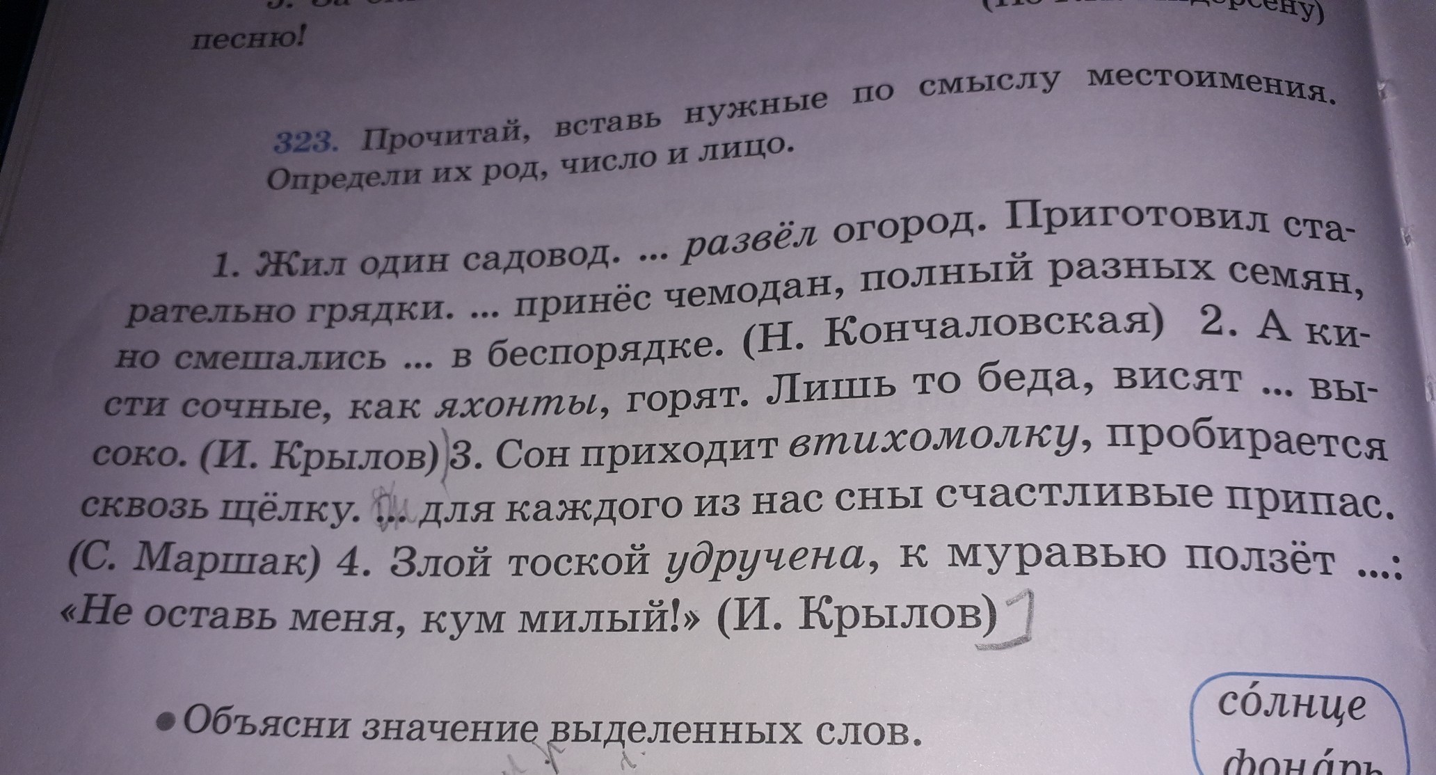 1. он(муж род, ед число, 3 лицо), он( см предыдущее) , они( мн число, 3 лицо). 2. они(см предыдущее) 3. он(см 1). 4. она( ед число , женский род, 3 лицо)