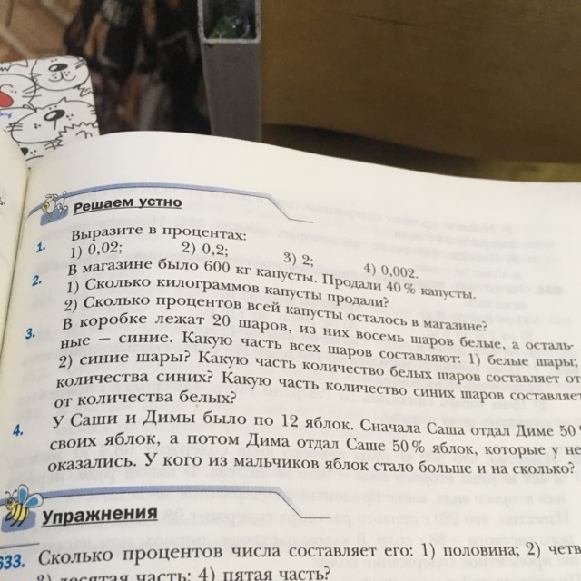 С вопросом №1 вопросы вряд ли могут возникнуть. Из текста задания нужно найти необходимую информацию: "В коробке лежат 20 шаров"; "восемь шаров белые"; "остальные - синие". Находим количество синих шаров по формуле "a + b = c", и часть каждого составляющего. Для этого достаточно выявить дробь, где в знаменателе указывается общее количество предметов (20), а в числителе - одно из его составляющих (8 или же 12). Данная дробь является ответом и никаких расчётов больше не требуется.