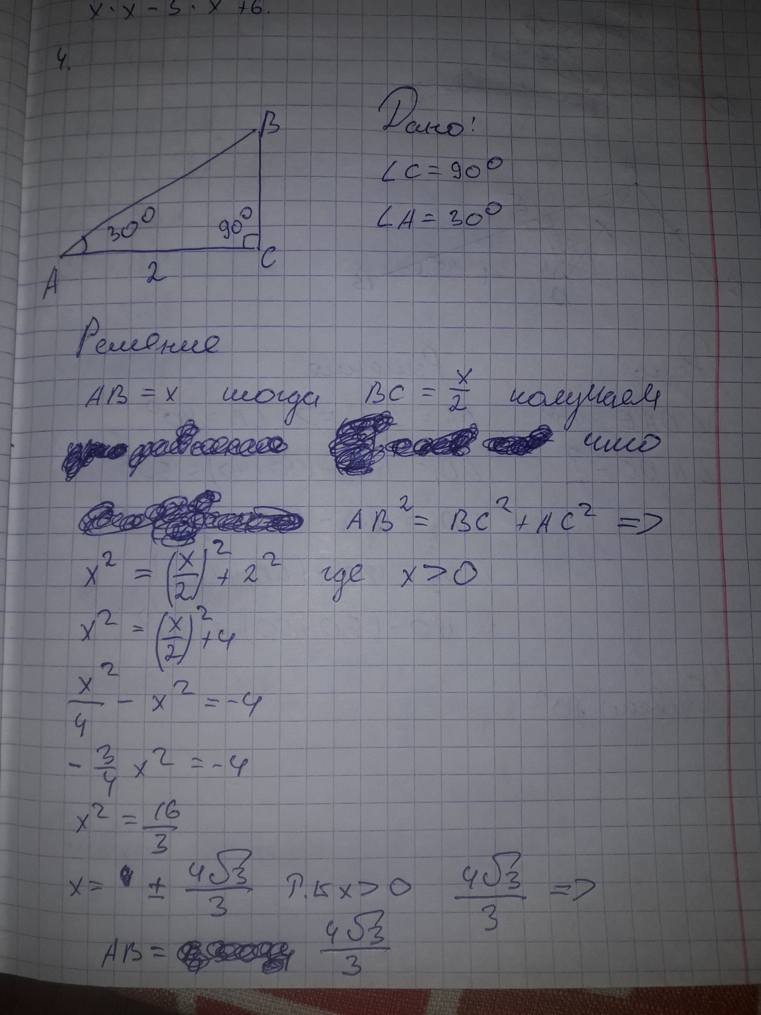 В треугольнике ABC угол C равен 90 угол A равен 30 AC=2 Найдите BC