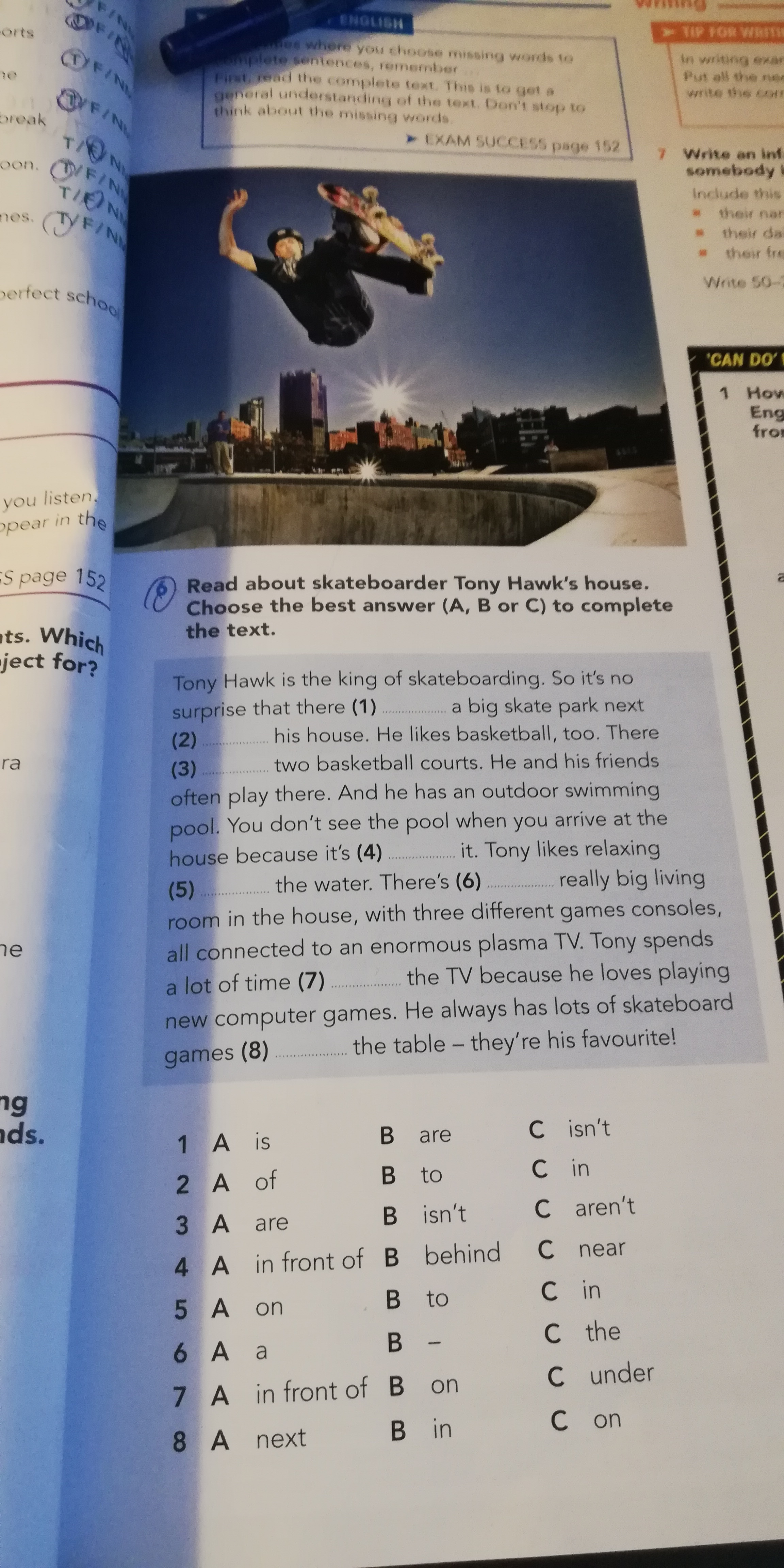 Read about skateboarder Tony Hawk's house. Choose the Best answer (A, B or C) to complete the text.