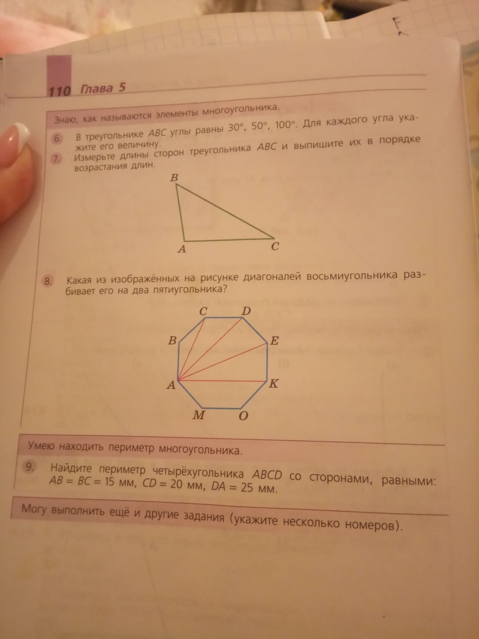 какая из изаброженых на рисунке диагоналей восьмиугольника разбивает его на два пятиугольника