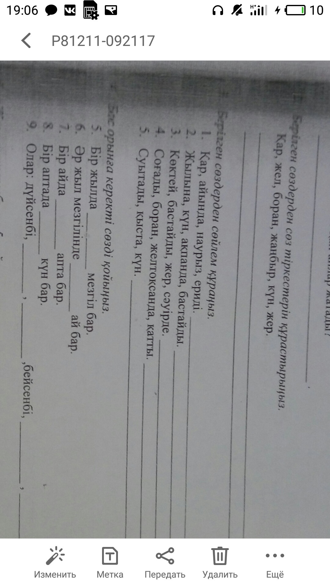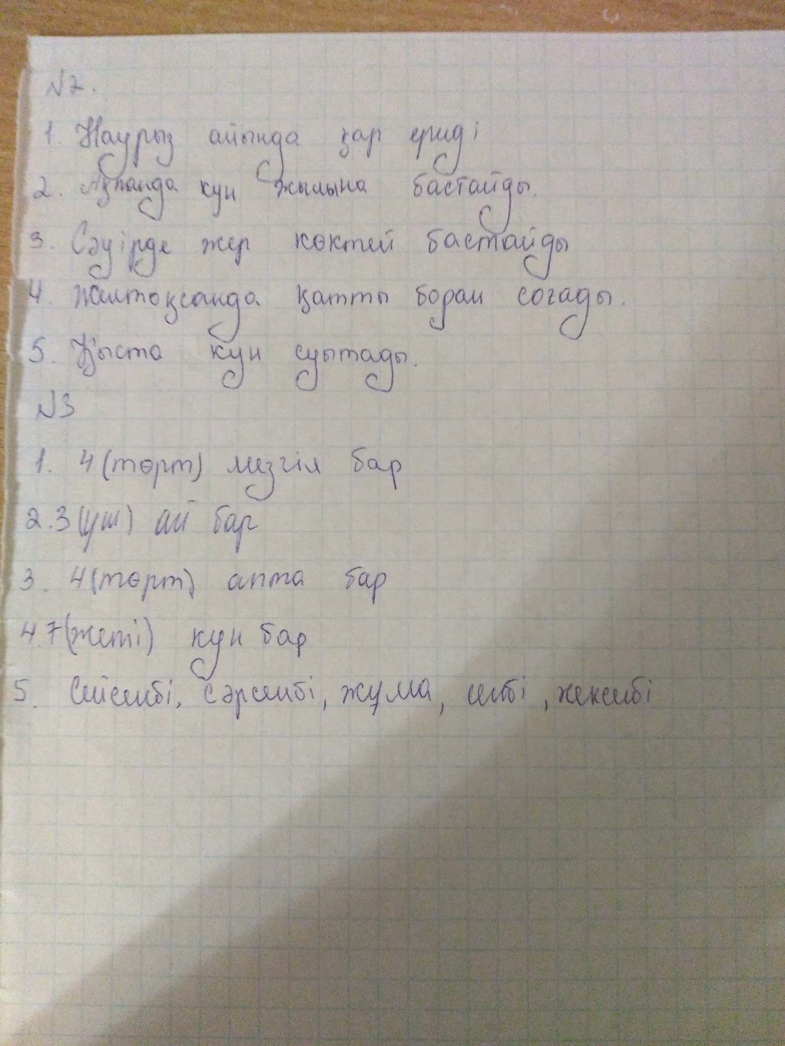 Олар:дүйсенбі,сейсенбі,сәрсенбі,бейсенбі,жұма,сенбі,жексенбі
