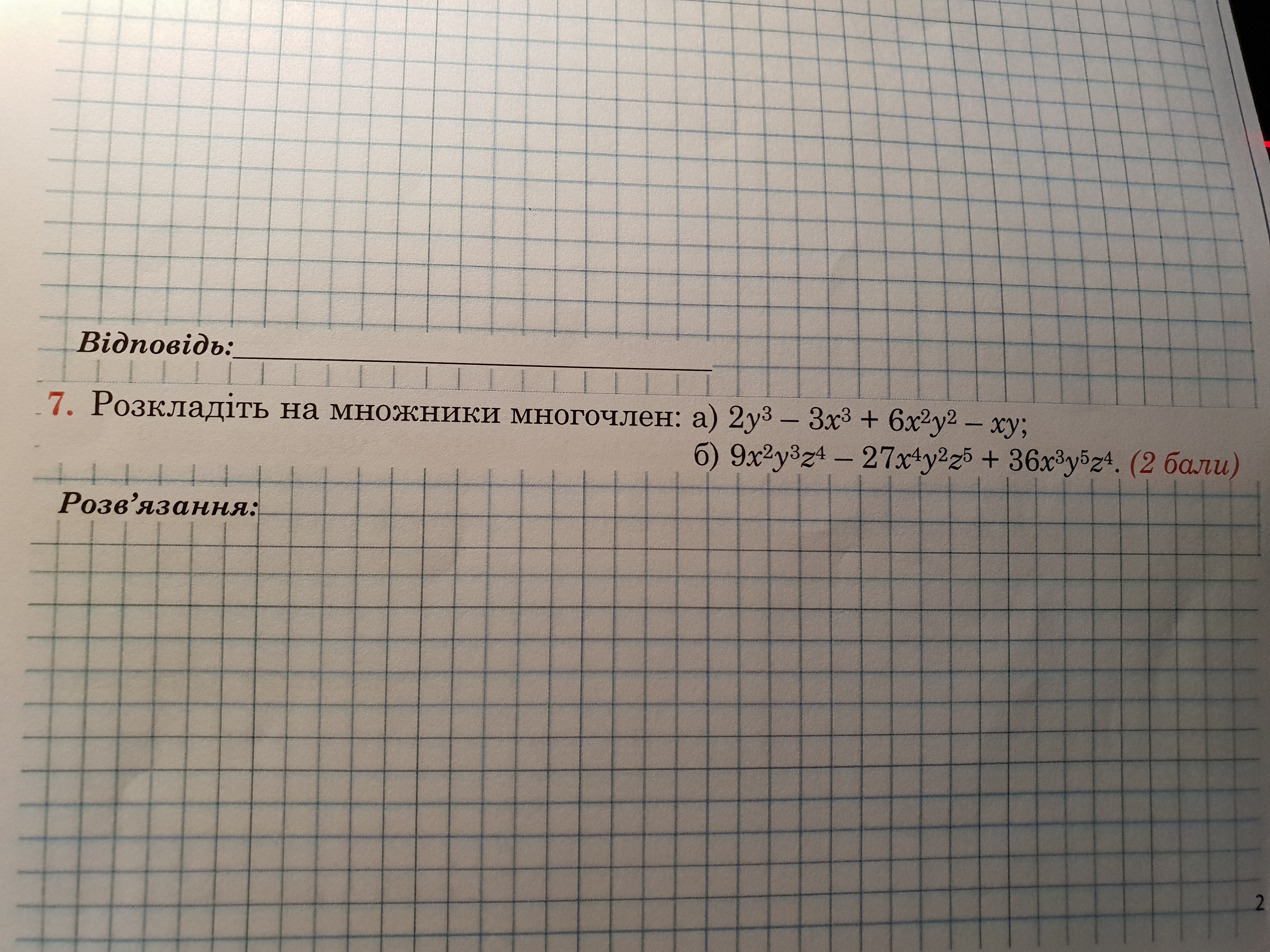2у3-3х3+6х2у2-ху 2у2*(у+3х2)-х*(3х2+у) ответ: (у+3х2) * ( 2у2-х)