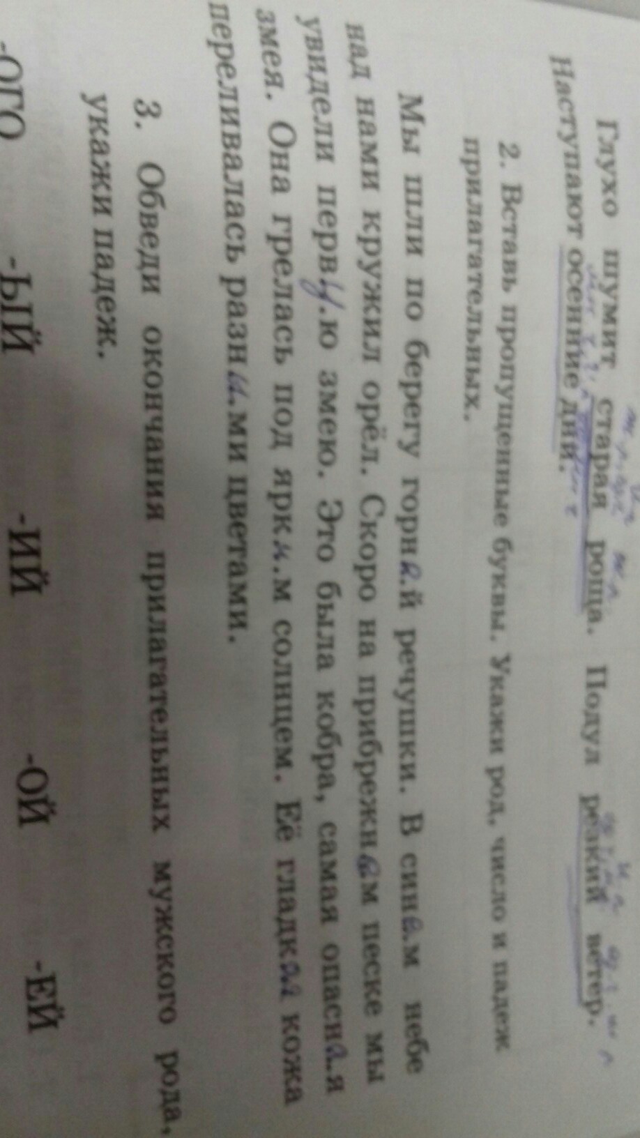 Вставь пропущенные буквы укажи род число и падеж прилагательных