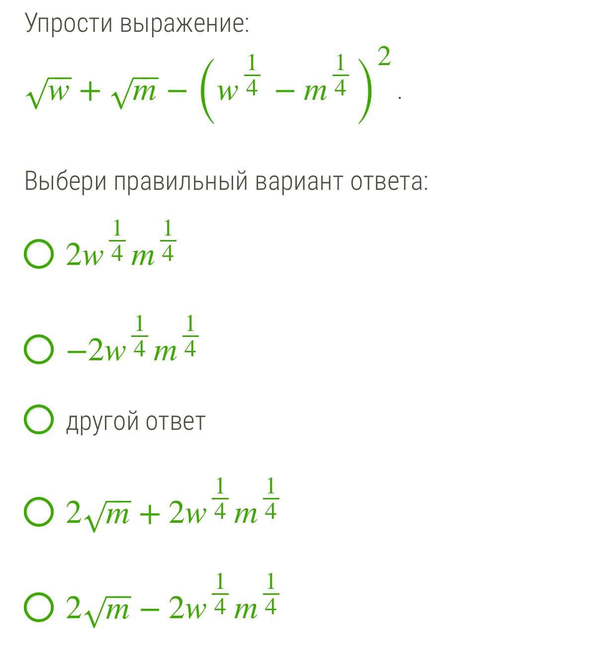 - Вообще у меня получилось 2√w + 2√m + 2×(4)√w×(4)√m