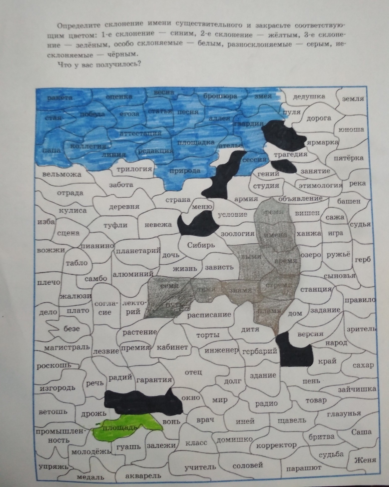 1 скл. : вельможа, отрада, забота, кулиса, деревня, страна, изба, сцена, невежа, дитя, бритва, судьба, ханжа, дедушка, земля, пуля, дорога, юноша, река, башен(башня), вишен, сажа, игра, зайчишка, Саша, судьба, Женя