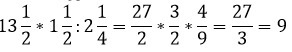 Затем 81/4 делим на 1 целую 1/2 то есть умножаем на 4/9 получаем 9.