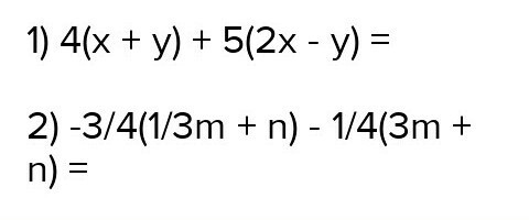 1) 4(x+y)+5(2x-y)=4x+4y+10x-5y=4x+10x+4y-5y=14x-y
